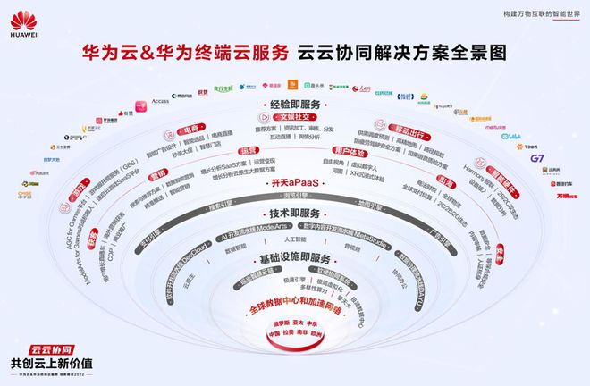 12 月 30 日,近日,以“云云协同共创云上新价值”为主题的华为云&华为终端云服务创新峰会 2022 在京召开。会上,华为云发布了华为云&华为终端云服务“云云协同解决方案全景图”:让业务全球可达;技术即服务,让创新触手可及;经验即服务,让优秀得以复制。