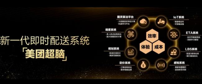 美团的核心战略,仍是围绕自己的本地生活服务业务做文章:无论是花大价钱研发无人配送机、无人配送车,还是以“吃”为核心搭建智慧城市基础设施网络和即时配送网络,目的都是尽力提高自己的核心竞争力。代表作“超脑”即时配送系统,就充分利用 AI 技术进行智能调度和路线规划,充分提高美团的配送效率。