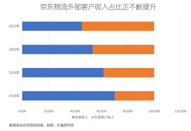 过去这几年,京东物流的外部客户收入占比一直不断提升,独立性明显加强,也提高了抵御风险的能力。