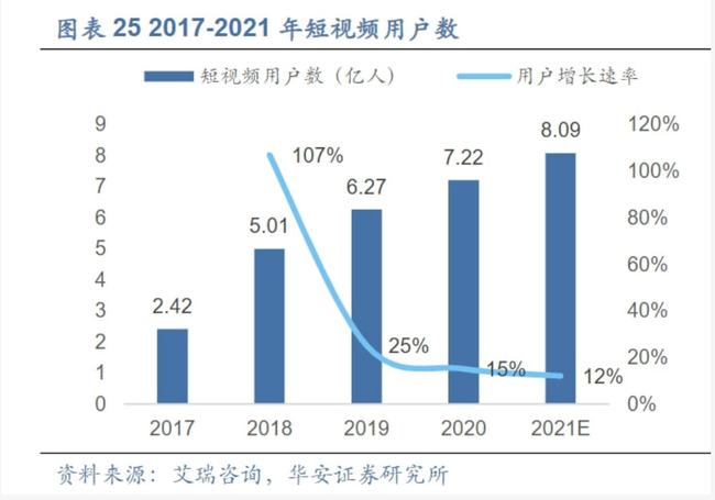事实上,抖音撞上增长瓶颈,是意料之内的事情。根据艾瑞咨询统计的数据,2018 年国内短视频用户实现爆发,用户规模从 2.42 亿猛增至 5 亿,同比增幅超过 107%,而后增速一路下滑。到 2020 年,用户增速已经降至 15%,今年预计会进一步跌至 12%。