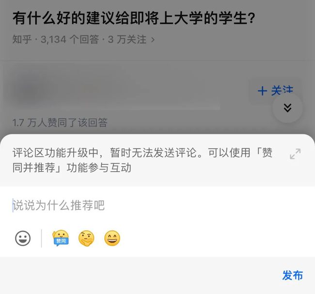 登录知乎发现,目前用户可以正常浏览知乎内容,但不可以评论。点击评论功能后,评论区上方会显示:“评论区功能升级中,暂时无法发送评论。可以使用’赞同并推荐’功能参与互动”。对于何时恢复评论功能,知乎相关人士保持沉默。