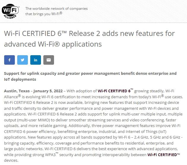 Wi-Fi 6 Release 2新标准发布:更快上传、更低延迟、更加节能
