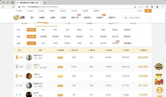 据相关网站统计,在近三个小时的直播中贝拉一人就创造了 233 万礼物收益。